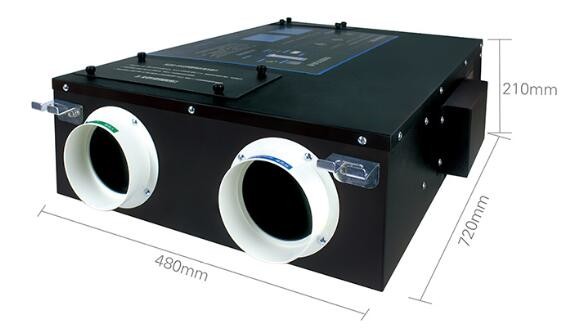 Heat exchanger of Suspended installation 80% efficiency corssflow heat recovery ventilator is made of ER paper which is featured by high moisture permeability, good air tightness, excellent tear resistance, and aging resistance. The clearance between the fibers is very small, so only the moisture molecules of small diameter can go through, the odor molecules of larger diameter are unable to pass through it. By this means, the temperature and humidity can be recovered smoothly, and prevent the pollutants infiltrating to the fresh air.